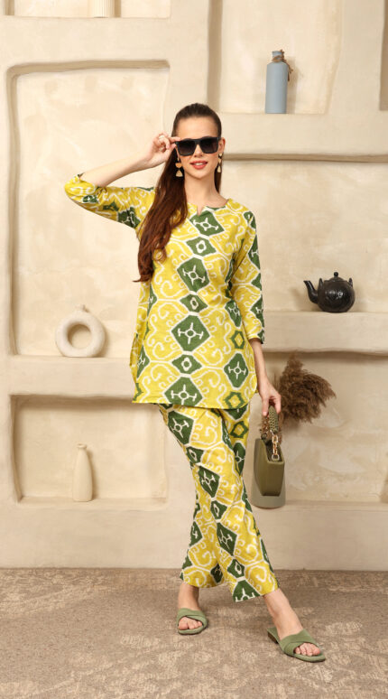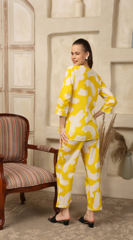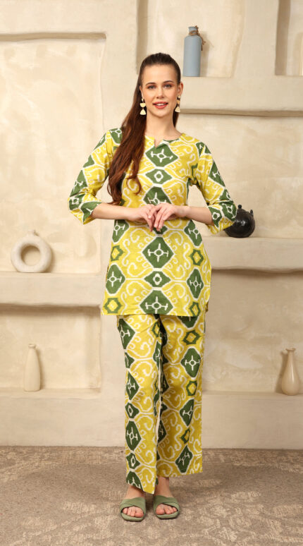Cotton Printed Cord Set (Yellow)