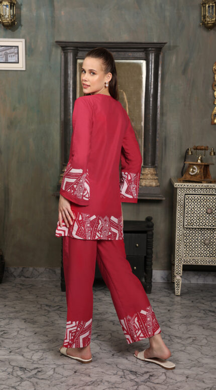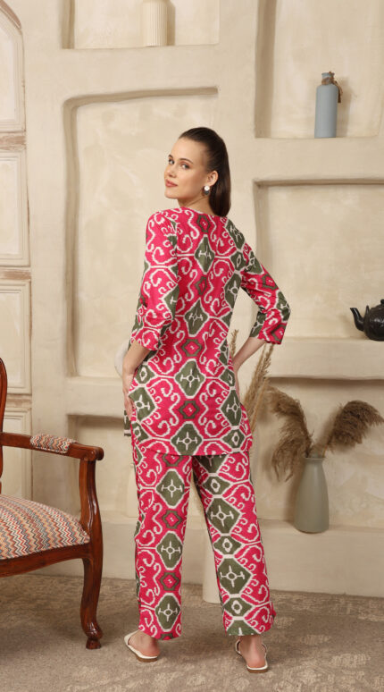 Cotton Printed Cord Set (Pink)