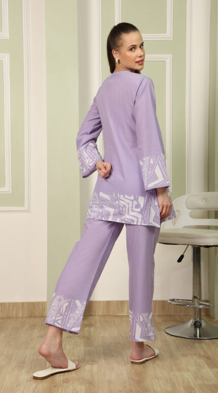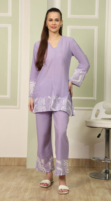 Cotton Printed Cord Set (Lavender)