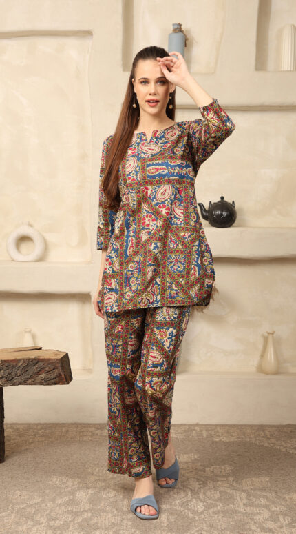 Cotton Printed Cord Set (Green)