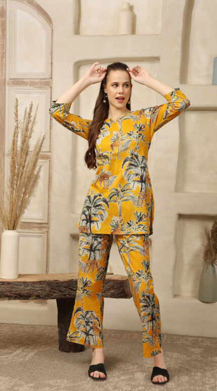 Cotton Printed Cord Set (Mustard)