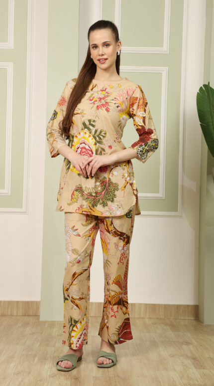 Cotton Printed Cord Set (Cream)