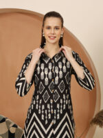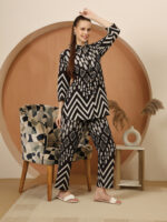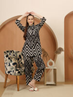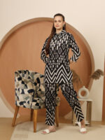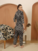 Black & White Ehtnic Motif Collared Cotton Lounge Co-Ord Set with 7 button
