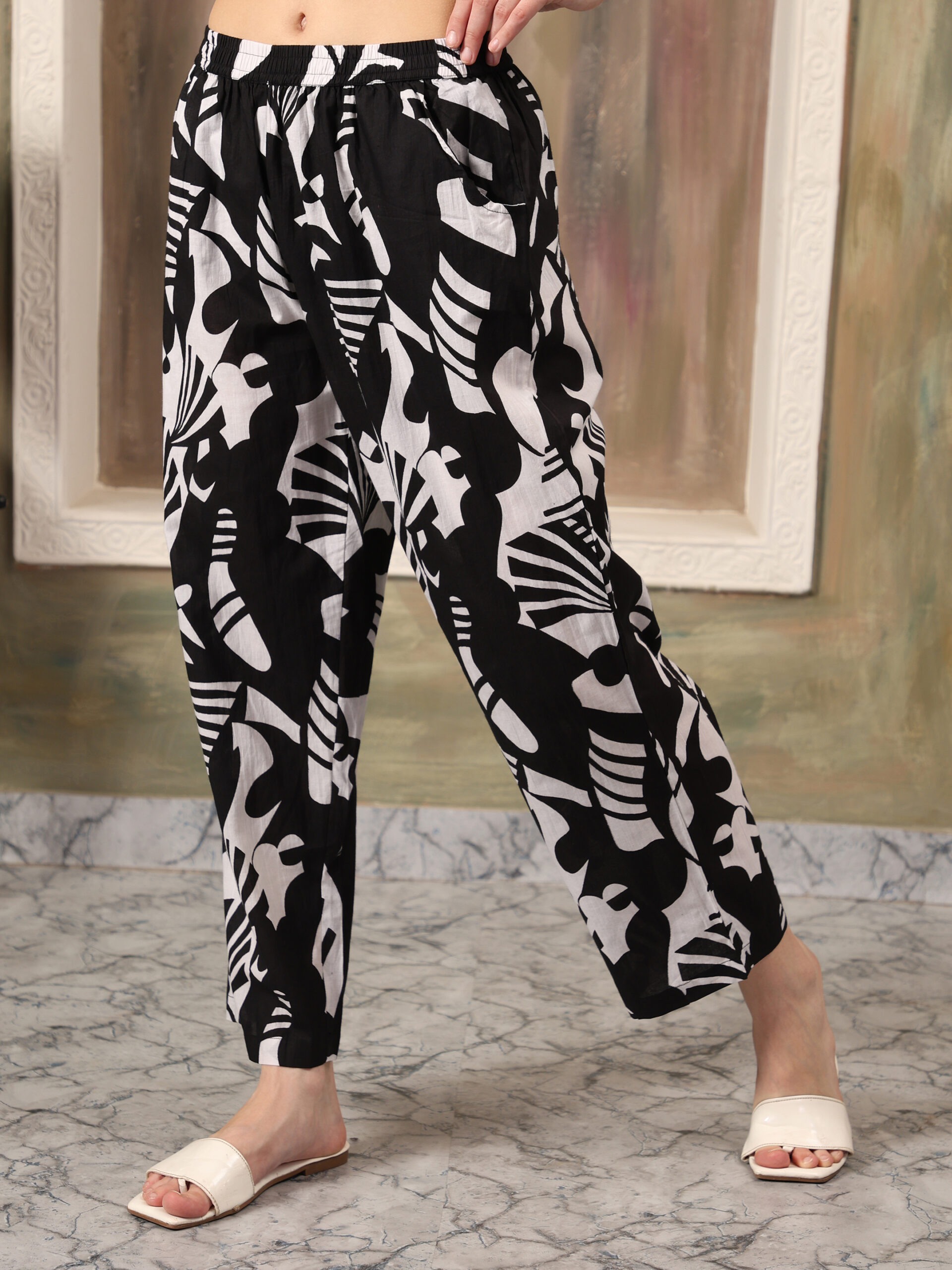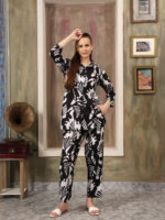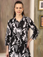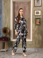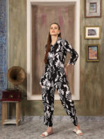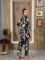 Black & White Ehtnic Motif Collared Cotton Lounge Co-Ord Set with 7 button