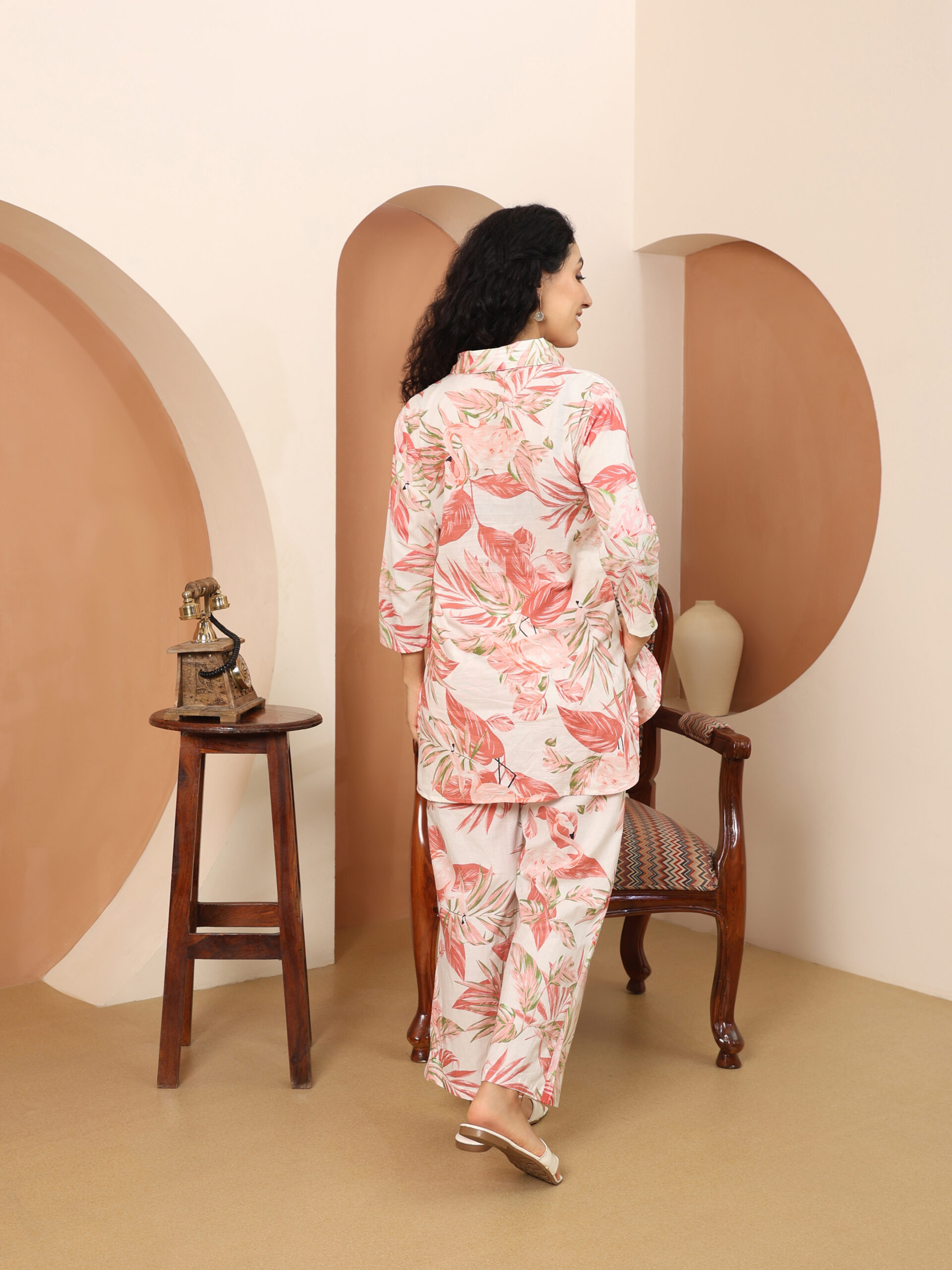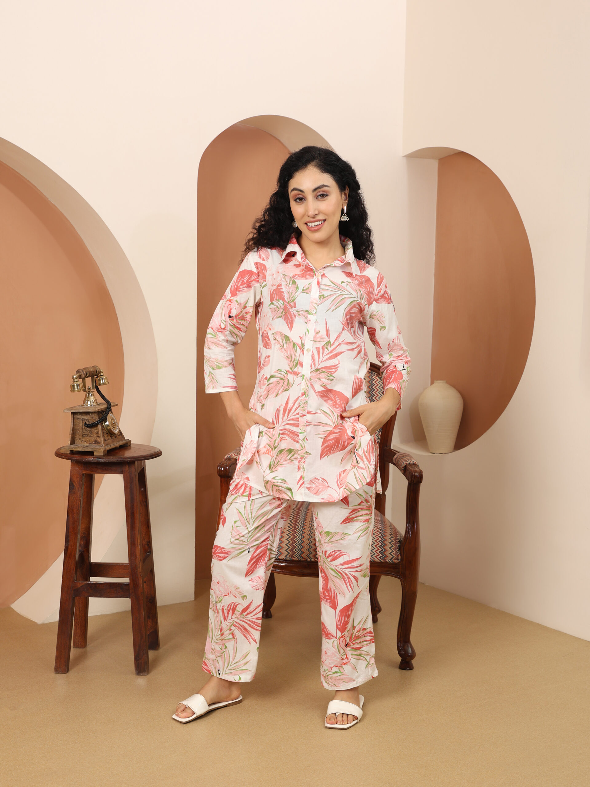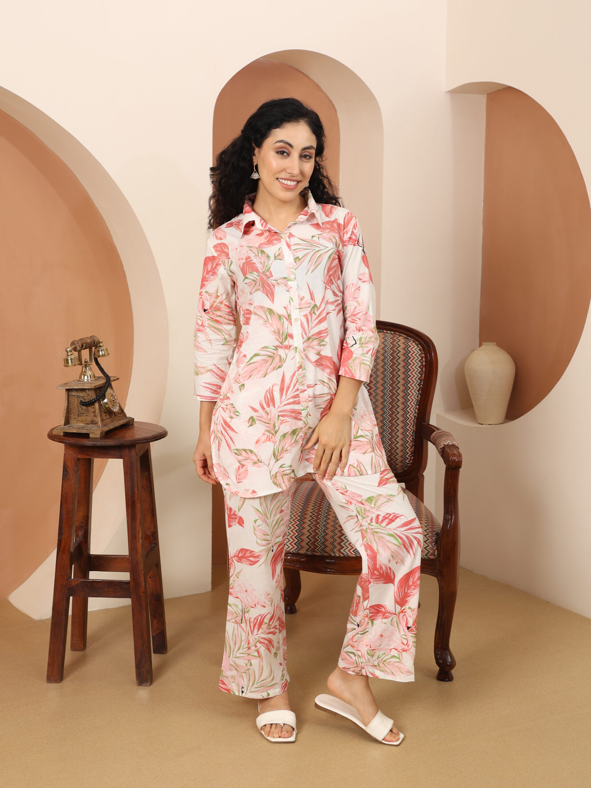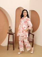 Floral Multicolor Collared Cotton Lounge Co-Ord Set with 3 button