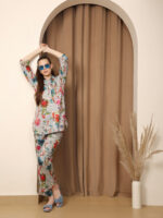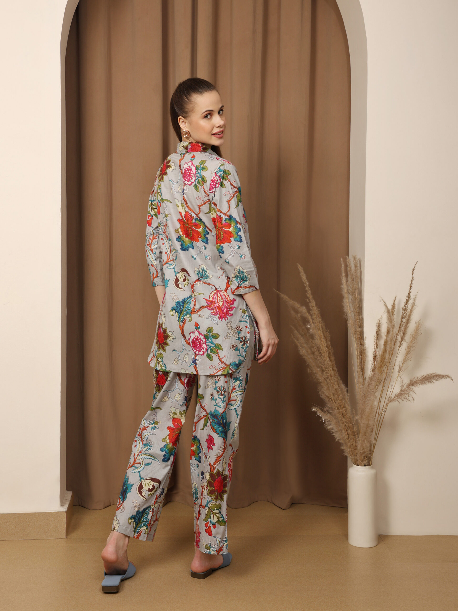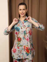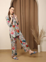 Floral Multicolor Collared Cotton Lounge Co-Ord Set with 3 button