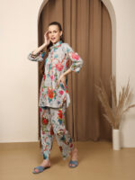Pink Floral Digital Print Cotton Co-ord Set – Top & Trousers