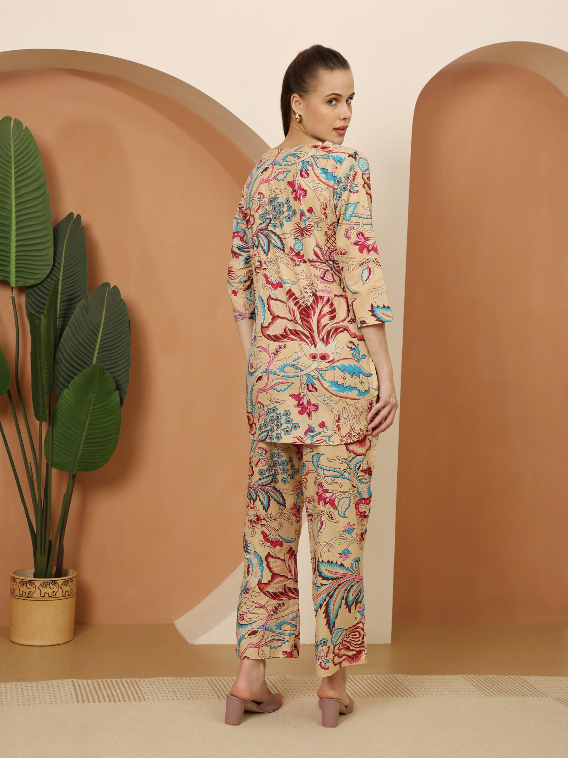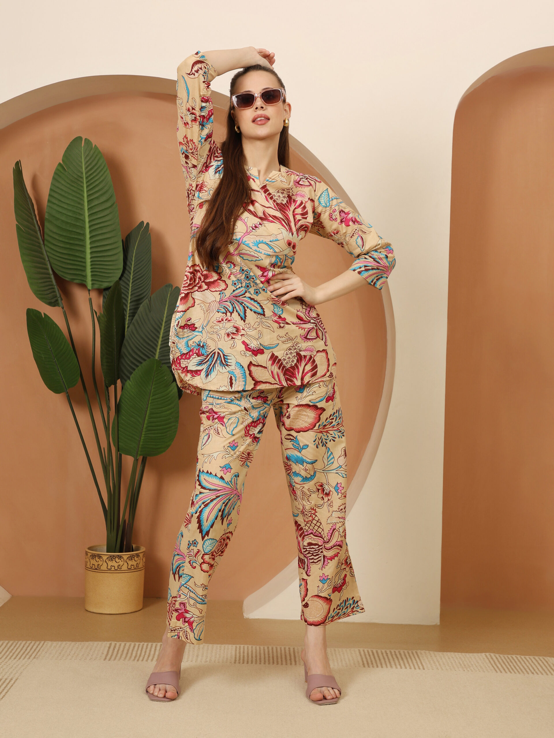 Pink Floral Digital Print Cotton Co-ord Set – Top & Trousers