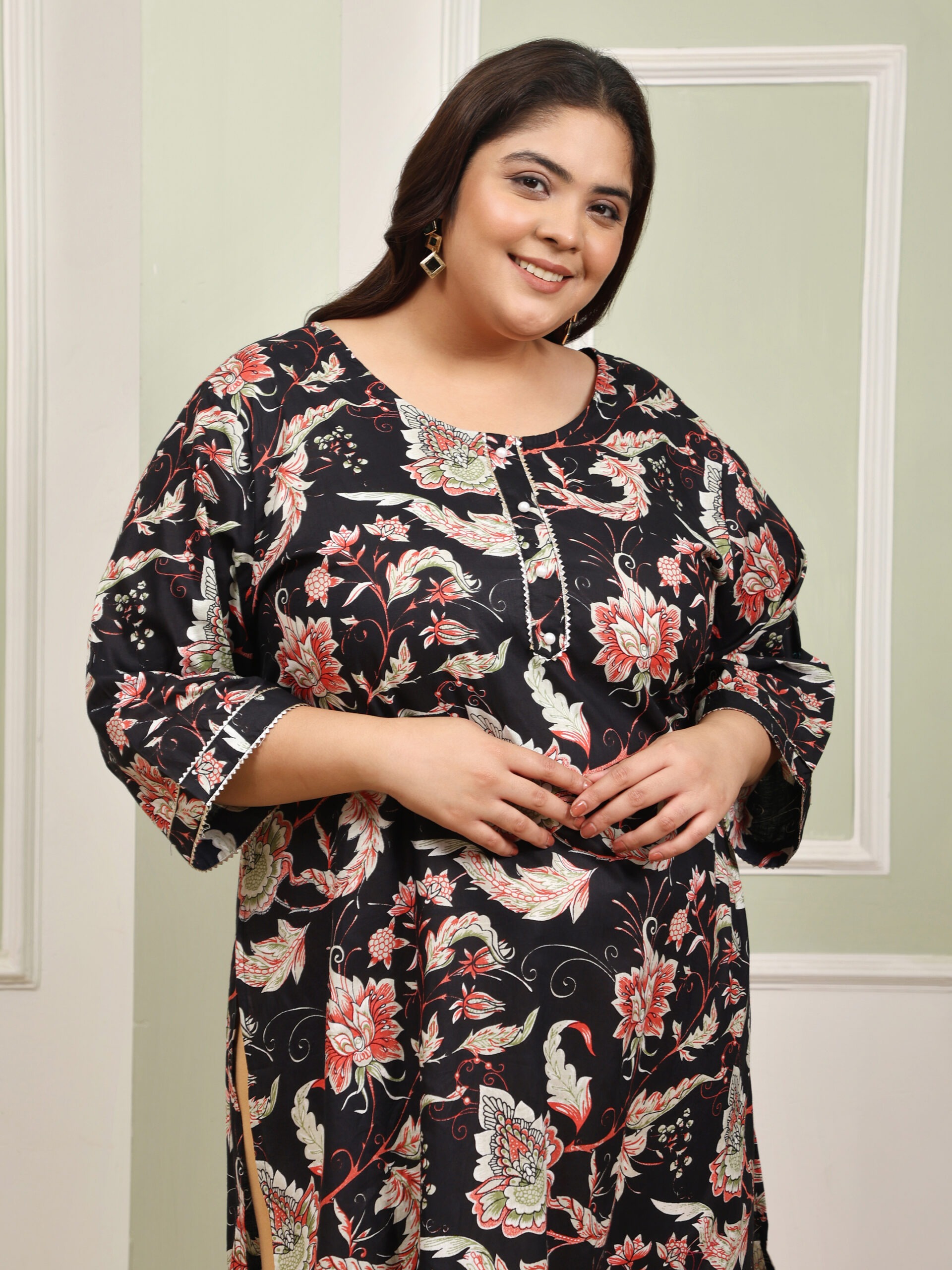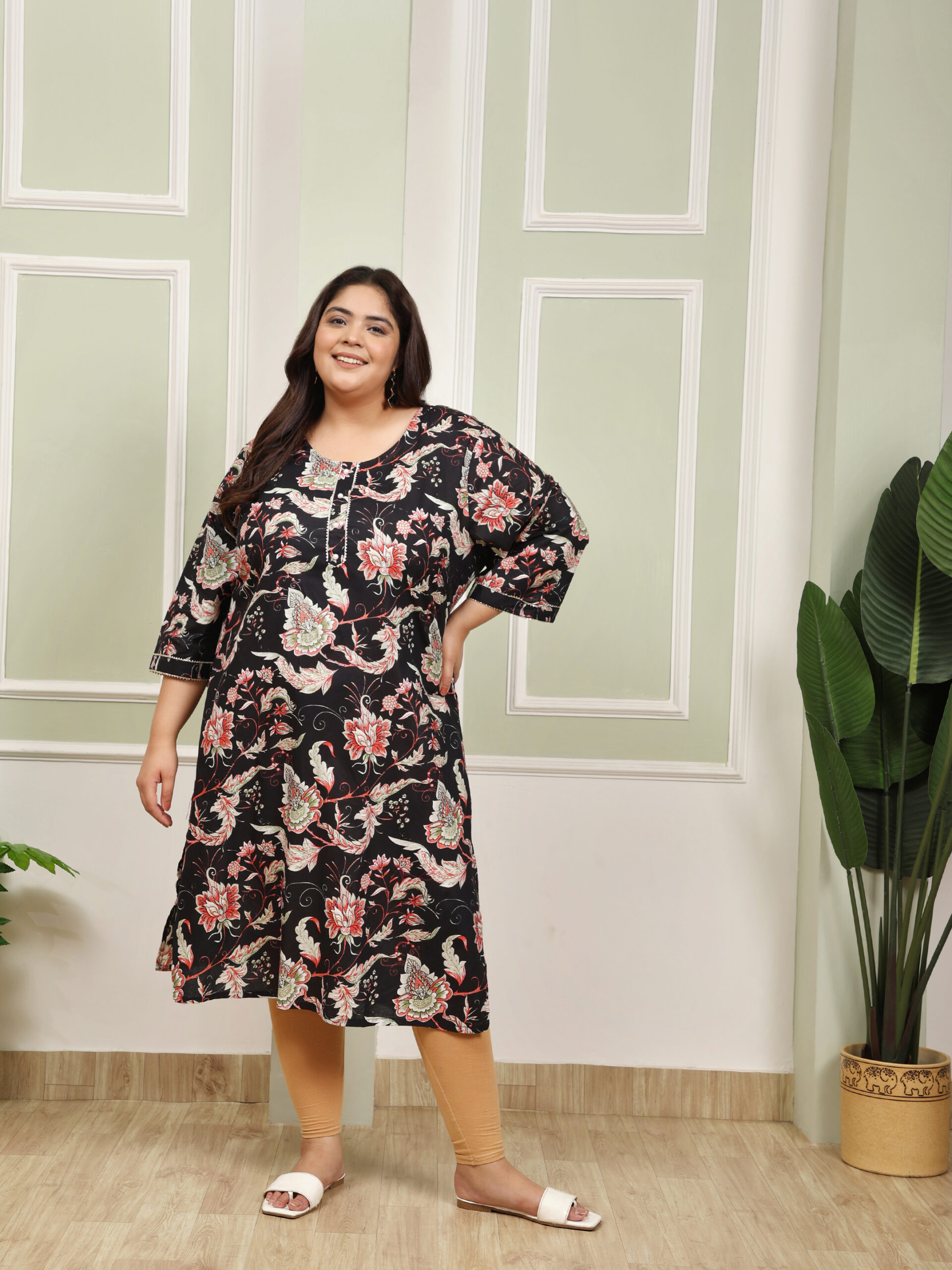 Be the first to review “Plus Size Black Cotton Print Long Kurti” Cancel reply