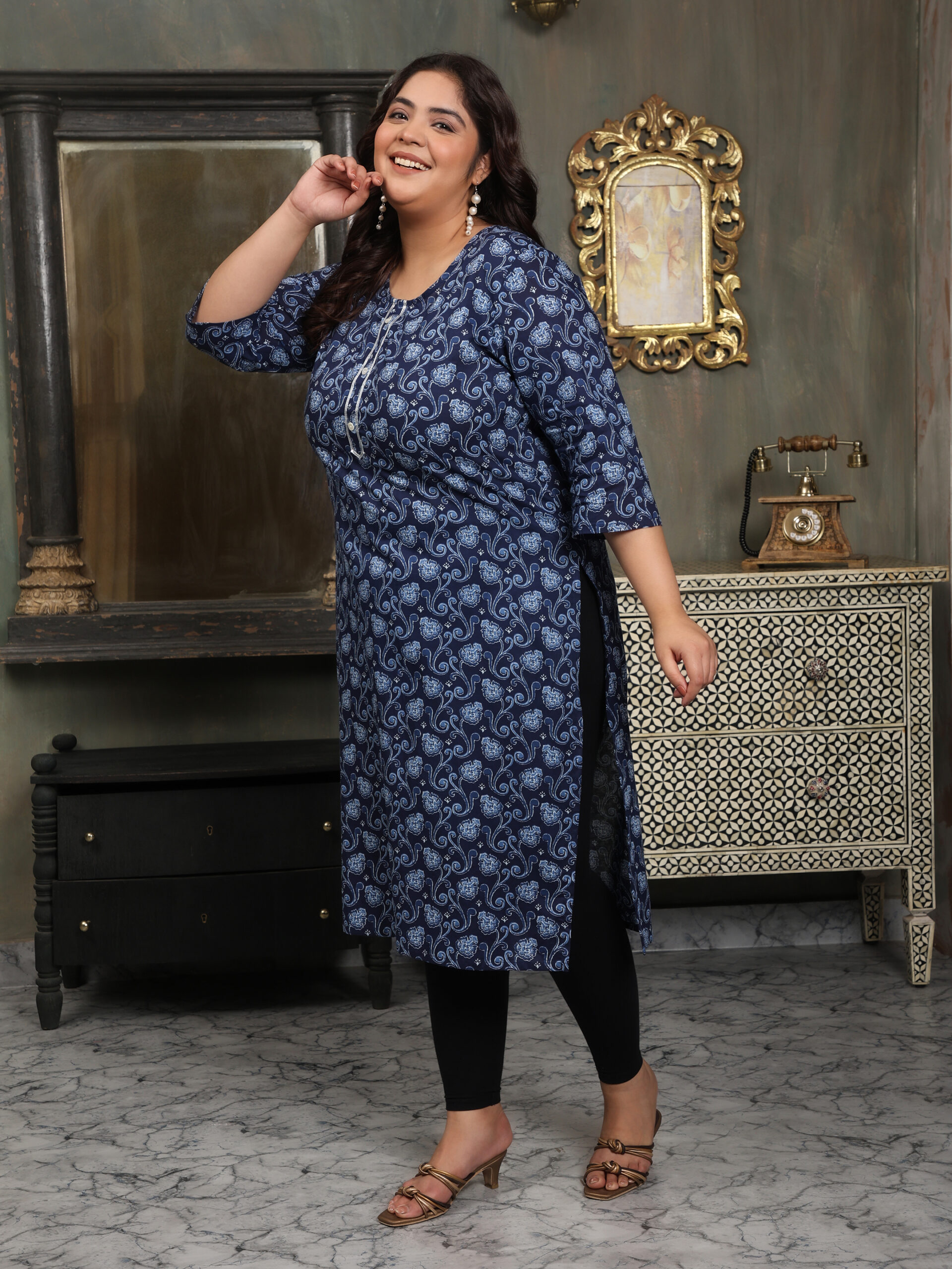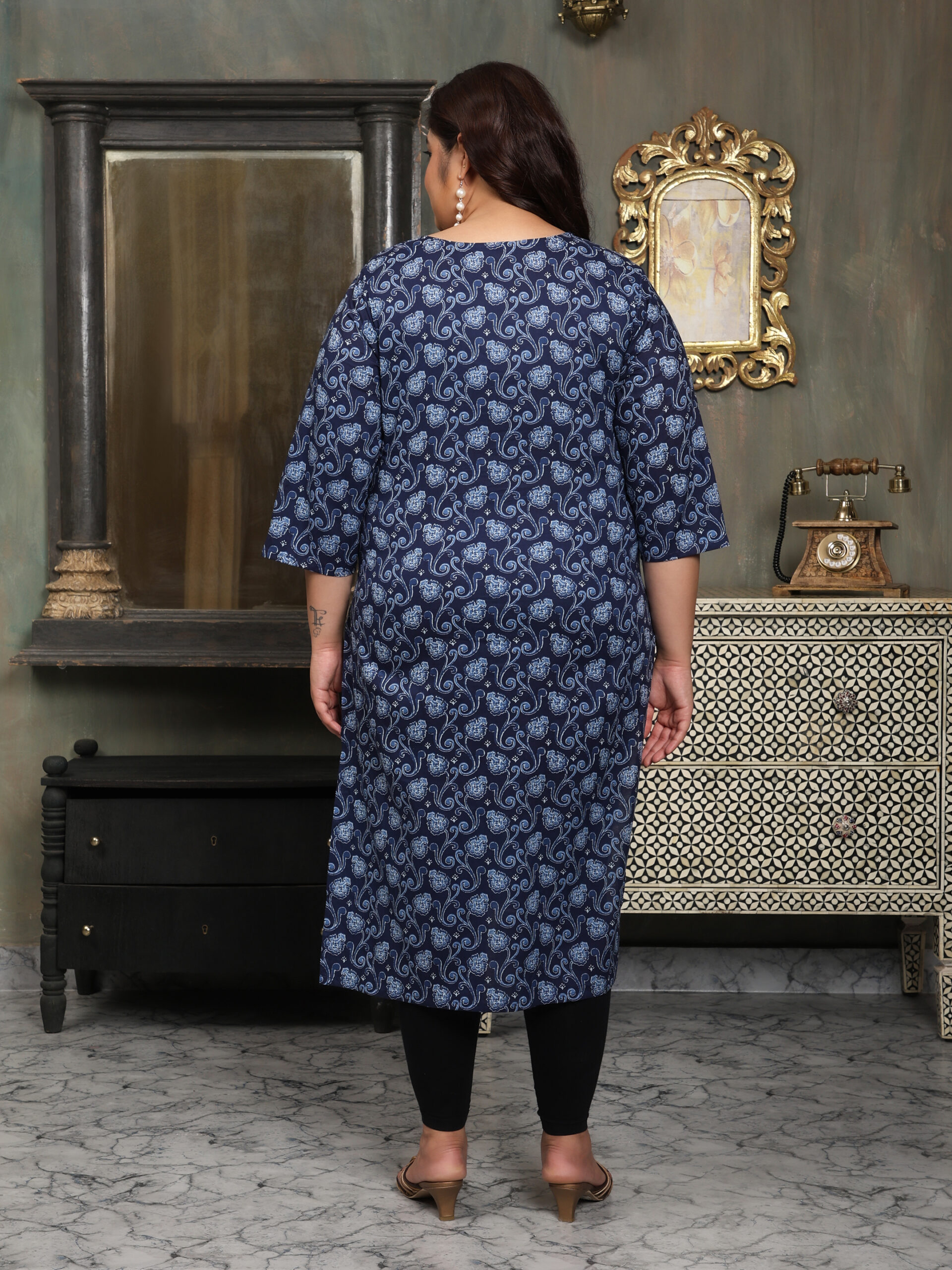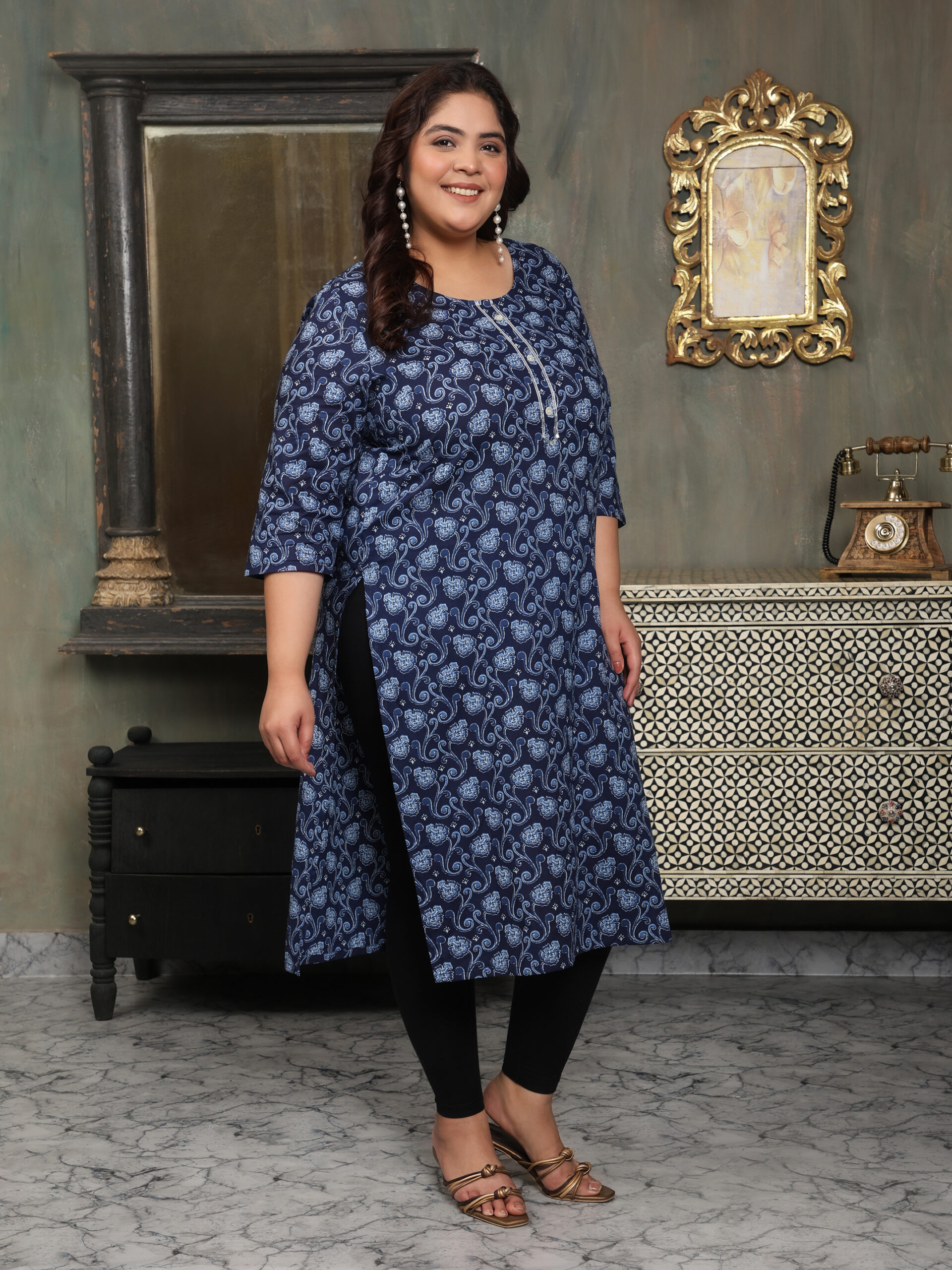 Be the first to review “Plus Size Blue Cotton Print Long Kurti”